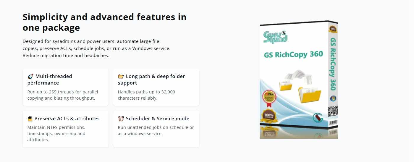 GS RichCopy 360 Standard offers high-performance file copying with multi-threaded technology, making large data transfers faster and more efficient.